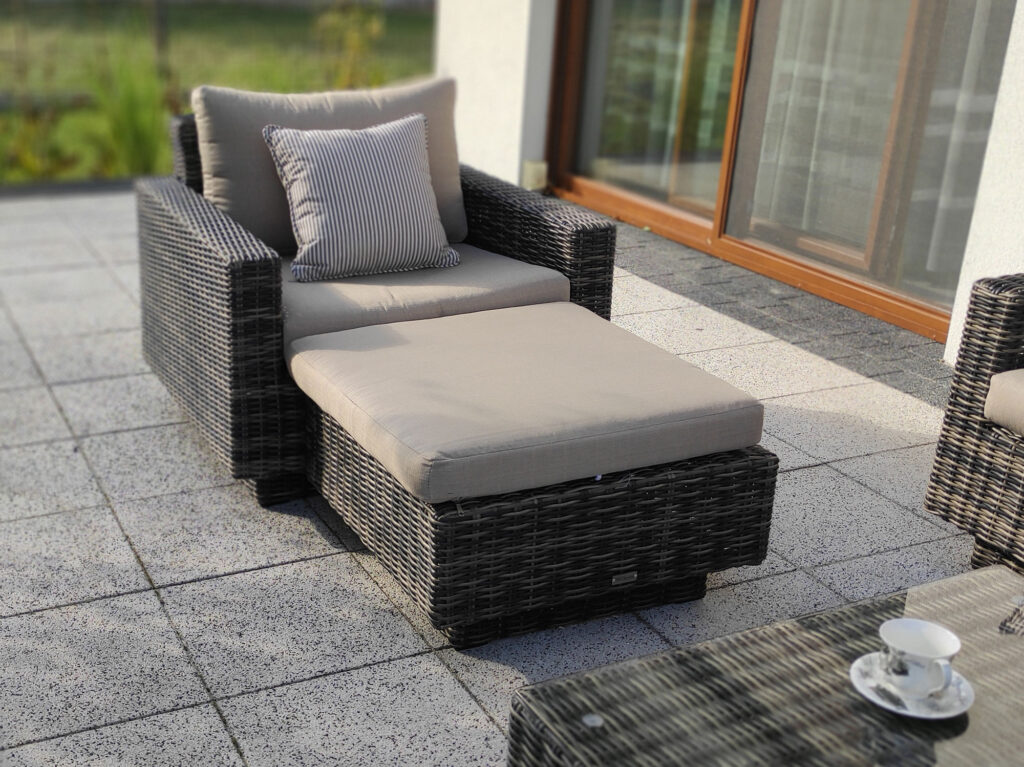 Podnóżek ogrodowy z technorattanu CALABRIA – nowoczesny element zestawu wypoczynkowego | BelGiardino